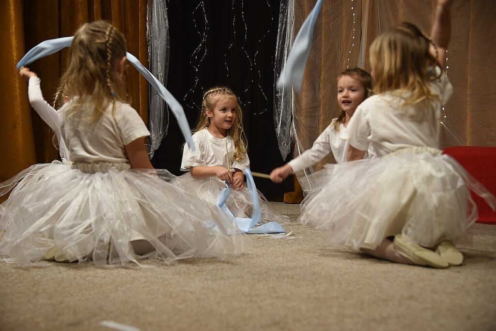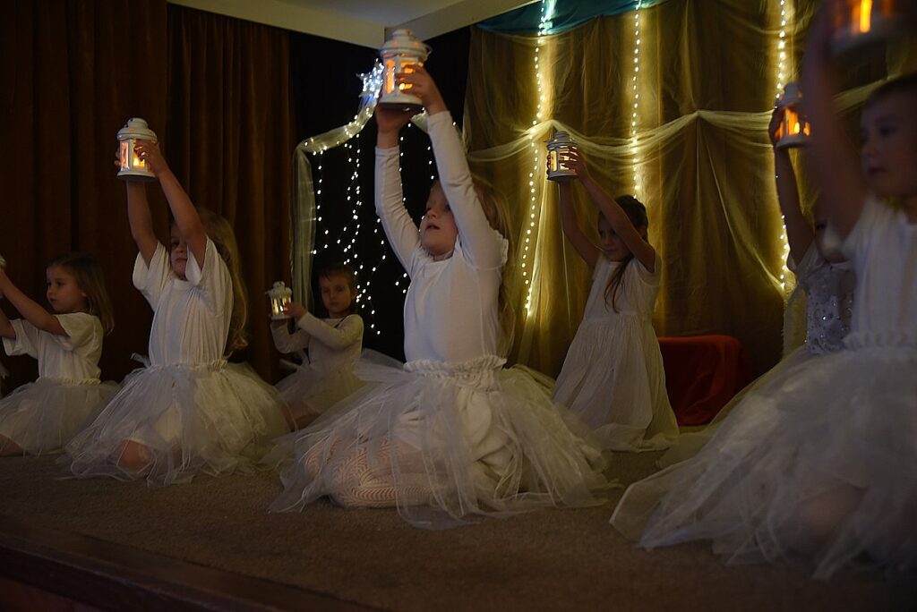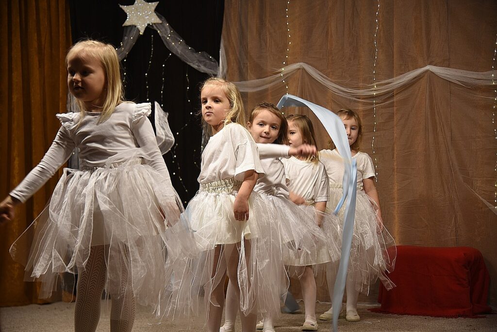 Na jevišti se objevily dobře známé vánoční postavy: andělé, pastýři, ovečky, sněhové vločky a čertíci. Vystoupení doplnily pečlivě připravené taneční choreografie. Nechyběl ani společný zpěv koled, k němuž se ochotně připojili přítomní hosté.